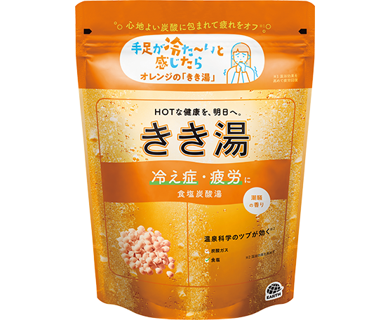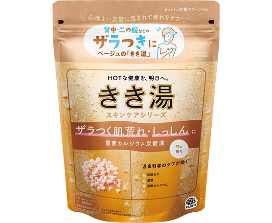 炭酸ガス、重曹、炭酸カルシウムが、温浴効果を高め血行を促進、「ザラつく肌荒れ・しっしん」を緩和して、たまった疲労感をいやします。
