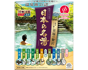 本格的な温泉気分満喫、こだわりの温泉タイプ入浴剤。一度はつかりたい、憧れの湯をセレクトしたアソートタイプ。